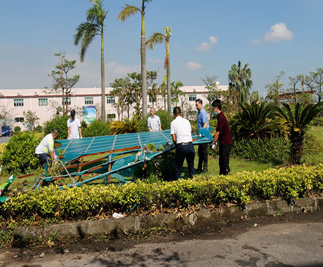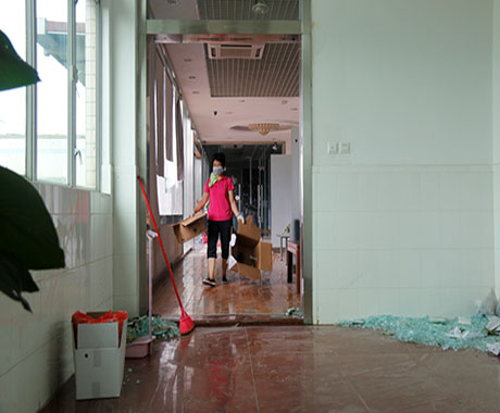 24日一早,劉錦鐘董事長(zhǎng)、張海濱總經(jīng)理現(xiàn)場(chǎng)進(jìn)行全方位巡查,根據(jù)公司受災(zāi)情況,提出調(diào)動(dòng)資源優(yōu)先修復(fù)辦公區(qū)域在臺(tái)風(fēng)中破損的門窗、天花,以便第一時(shí)間恢復(fù)公司正常辦公生產(chǎn)環(huán)境。另一方面,配合保險(xiǎn)公司人員清點(diǎn)公司受損資產(chǎn)以做好索賠工作。在公司領(lǐng)導(dǎo)的指導(dǎo)下,總經(jīng)辦及后勤工作人員從24日開始,緊張、高效而有序的開展各項(xiàng)災(zāi)后修復(fù),及應(yīng)對(duì)27日“帕卡”臺(tái)風(fēng)的準(zhǔn)備工作。