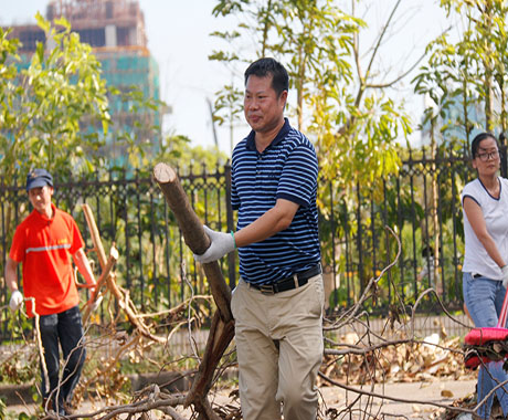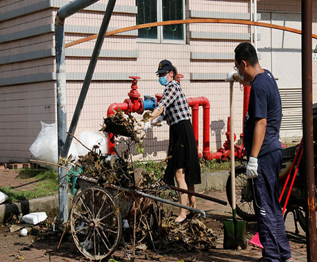 因2次臺(tái)風(fēng)連續(xù)而猛烈的破壞,園區(qū)內(nèi)隨處可見倒臥的樹木及斷枝、被吹落的屋頂鐵皮、保溫棉垃圾。為盡快恢復(fù)園區(qū)的環(huán)境,29日在中共中富總支部的倡議下,由黨員、志愿者組成的搶險(xiǎn)小分隊(duì),頂著毒辣的太陽(yáng)及高溫天氣,大家不怕臟、不怕累、手持砍刀將倒下的大樹鋸斷搬走,用掃把、鐵鏟將園區(qū)內(nèi)吹倒的樹桿、鐵皮、玻璃等垃圾雜物一 一清理干凈。在清理現(xiàn)場(chǎng),公司領(lǐng)導(dǎo)張海濱總經(jīng)理親臨現(xiàn)場(chǎng)參加并指導(dǎo)。在熱火朝天的現(xiàn)場(chǎng),不論是辦公室人員還是車間人員,不管是男同胞還是女同胞,均不分彼此,全力而為,隔著屏幕都能感覺到大家滿滿的正能量。無情的臺(tái)風(fēng)雖然破壞了美麗的家園,卻也讓我們?cè)俅慰吹搅艘粋€(gè)個(gè)愿意奉獻(xiàn)、不怕辛苦的中富人。